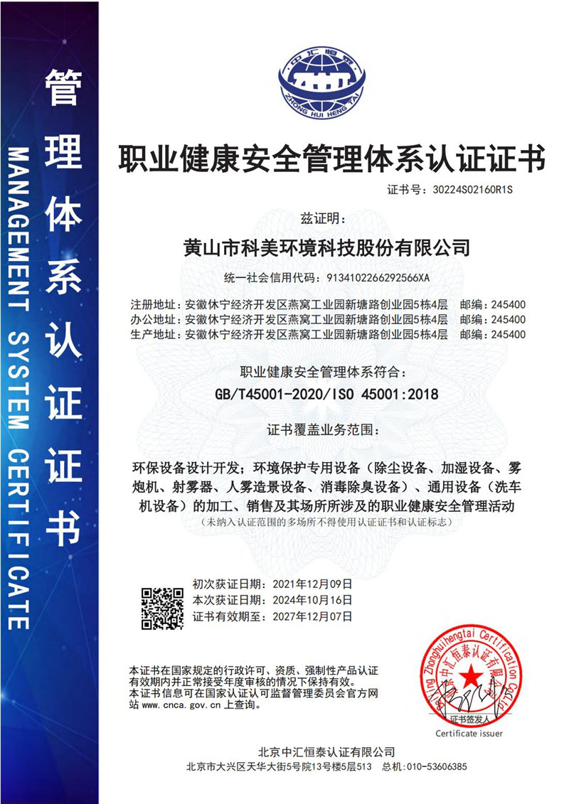 • 職業健康安全管理體系認證證書